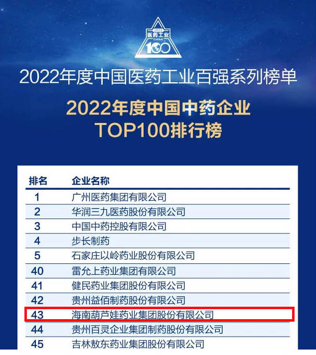 尊时凯龙药业集团连续4年荣登“中国中药企业TOP100排行榜”,排名上升至第43位